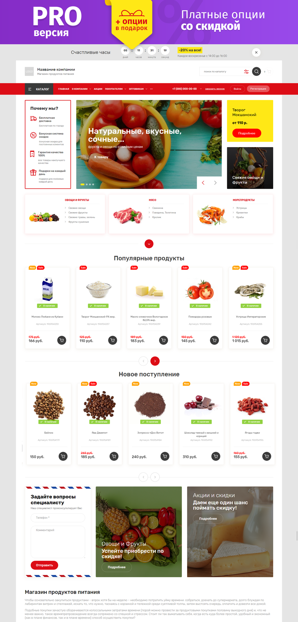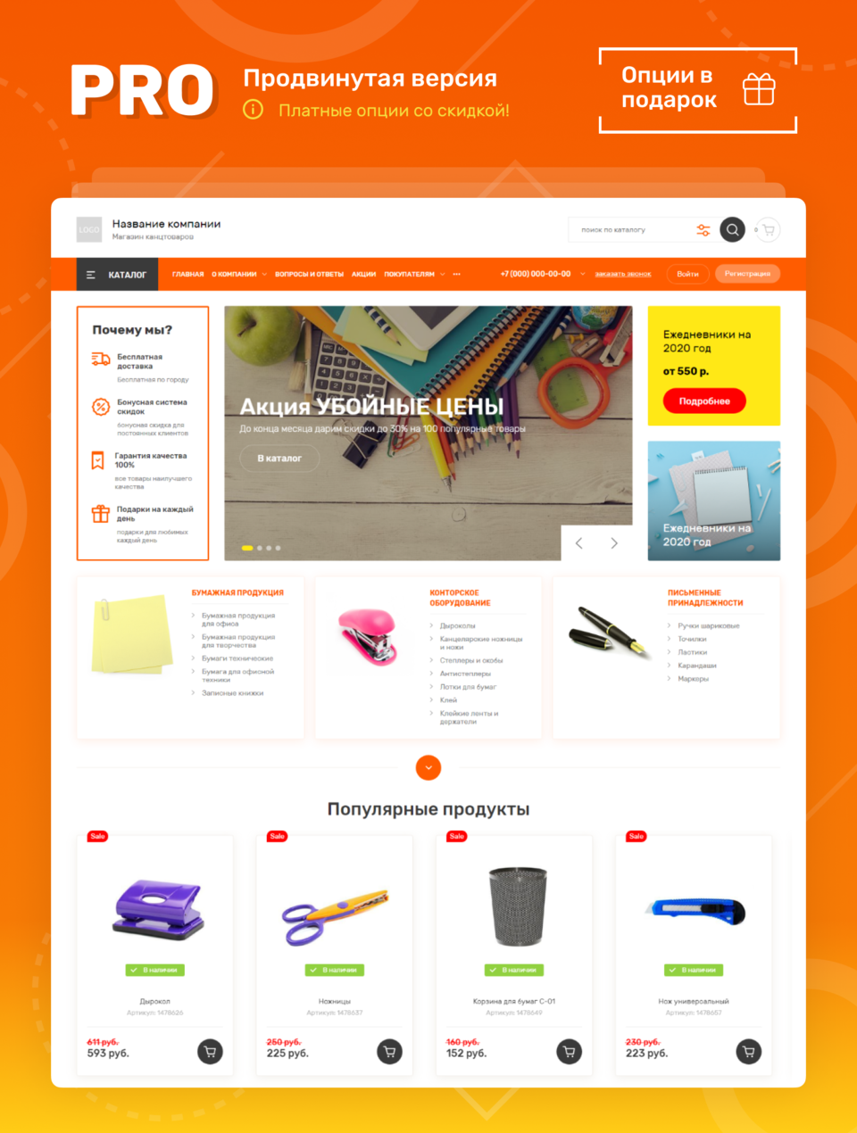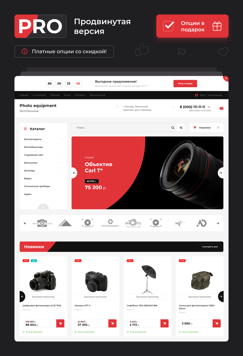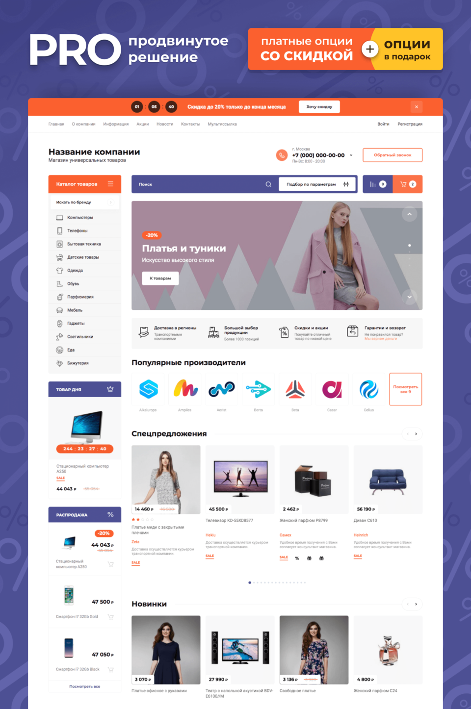 У нас Вы легко сможете открыть готовый интернет-магазин, в который включены следующие модули для ведения торговли: каталог продукции; экспорт и импорт товаров; оформление заказов; фильтр и поиск по параметрам; оплата и доставка; регистрация пользователей; гибкий механизм скидок.