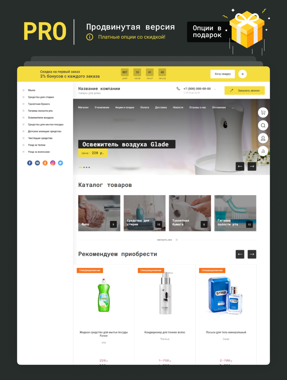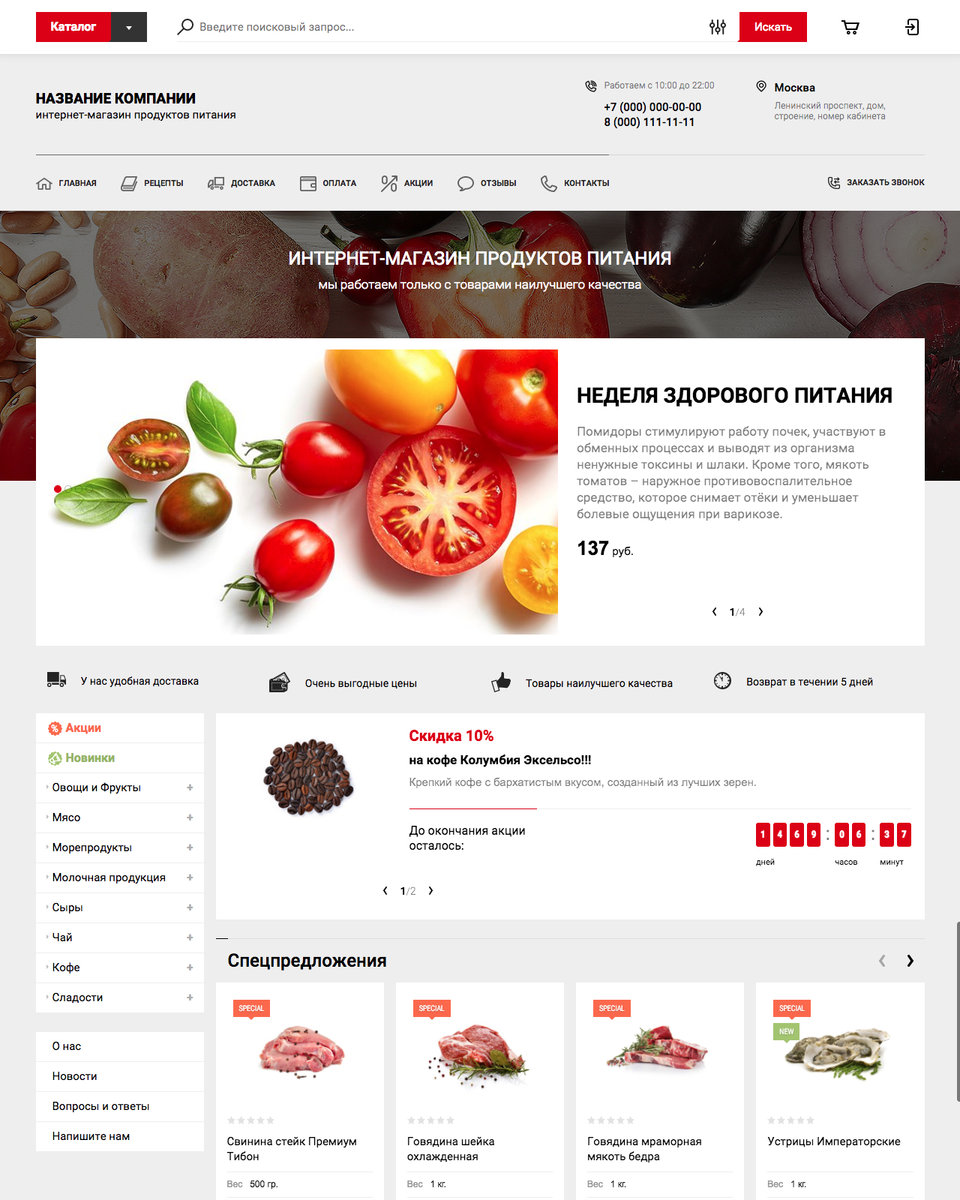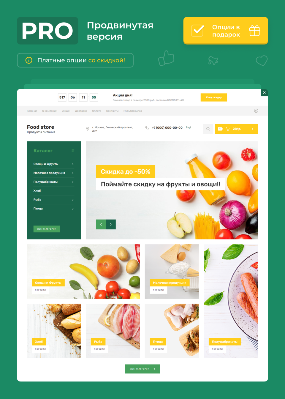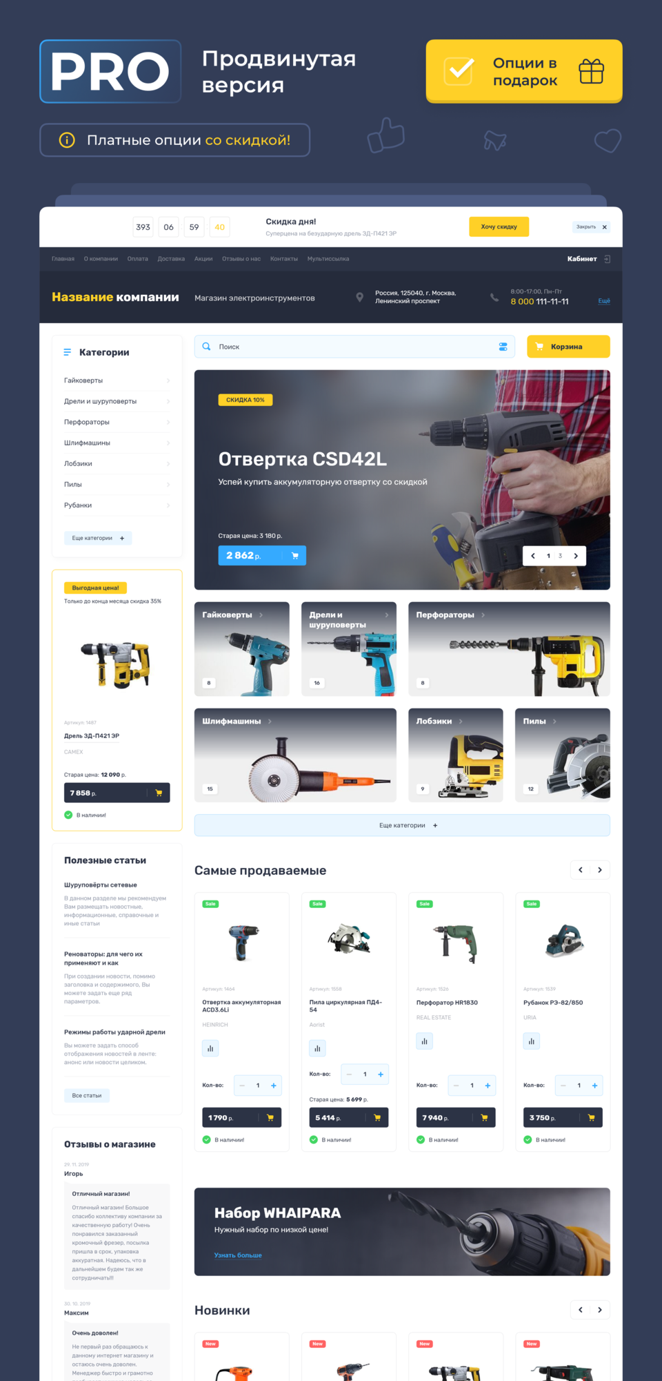 У нас Вы легко сможете открыть готовый интернет-магазин, в который включены следующие модули для ведения торговли: каталог продукции; экспорт и импорт товаров; оформление заказов; фильтр и поиск по параметрам; оплата и доставка; регистрация пользователей; гибкий механизм скидок.